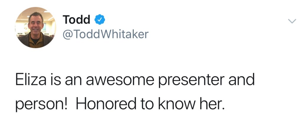 Lastly, and this is prideful but honest, thank you for always saying, “you probably already do this”, and “in addition to what you already are doing”. As a teacher of 18 years, and someone who dedicates my life to teaching kids (who are not my flesh and blood) our “new curricular plans” are often top down and fail to acknowledge that we are sweating blood researching, planning, and teaching in real time. I often feel I am being told what to do by people who don’t know what I’m already doing. Your visits to my classroom and just your words mentioned above give me the pat on the back that I need and the motivation to keep chugging along in my life’s passion- teaching humans to be the best they can be.